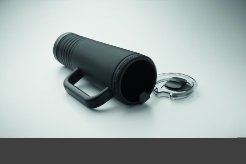 Double wall cheering tumbler in stainless steel outside and PP inside. PS lid with built-in noise-making horn feature. Capacity 700 ml.