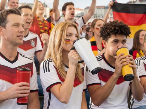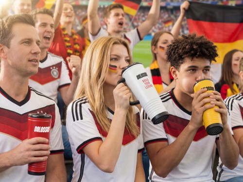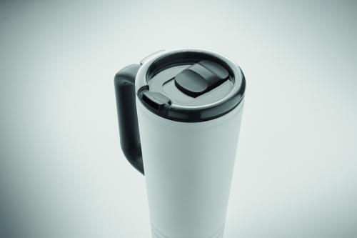 Double wall cheering tumbler in stainless steel outside and PP inside. PS lid with built-in noise-making horn feature. Capacity 700 ml.