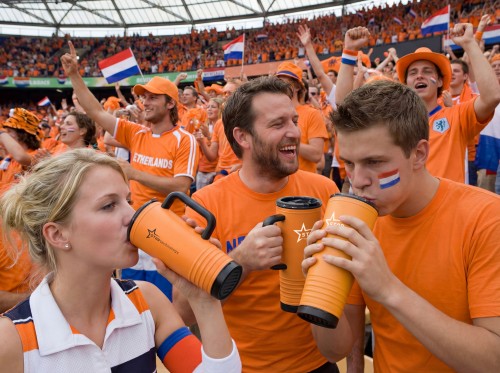 Double wall cheering tumbler in stainless steel outside and PP inside. PS lid with built-in noise-making horn feature. Capacity 700 ml.