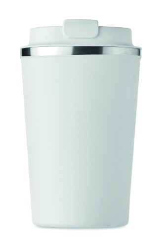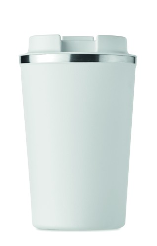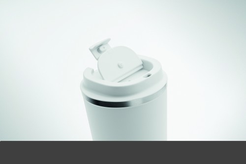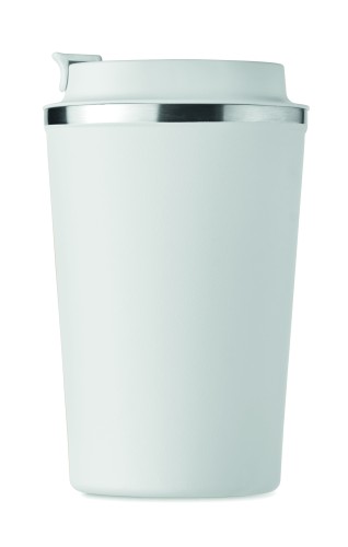 Double wall stainless steel tumbler with PP lid. Capacity: 350 ml. Leak free.