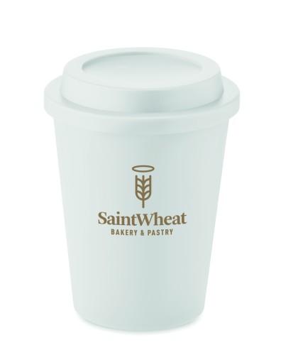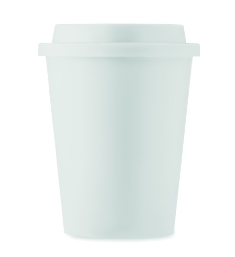 Double wall tumbler in PP with lid. Capacity: 300 ml.