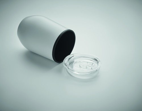 Double wall stainless steel cup with inner PP and transparent PS lid. Capacity: 350 ml.