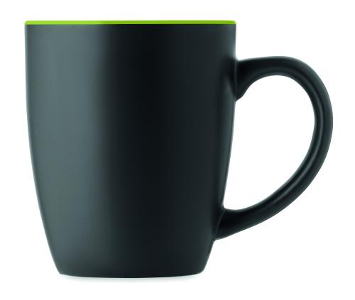 Black matt ceramic mug with shiny coloured inside. Capacity: 290 ml. With a special coating for laser engraving