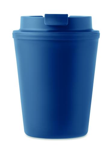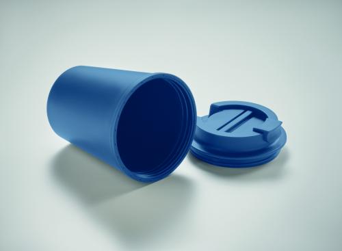 Double wall tumbler in PP. Capacity: 300 ml. Leak-free.