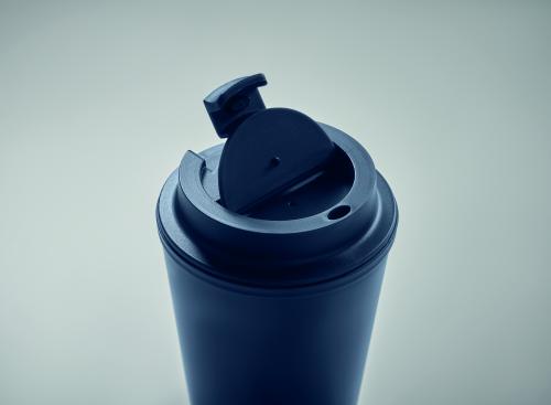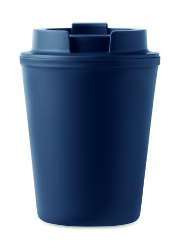 Double wall tumbler in PP. Capacity: 300 ml. Leak-free.