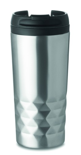 Double wall stainless steel travel cup with inner PP and lid. Capacity: 280 ml.