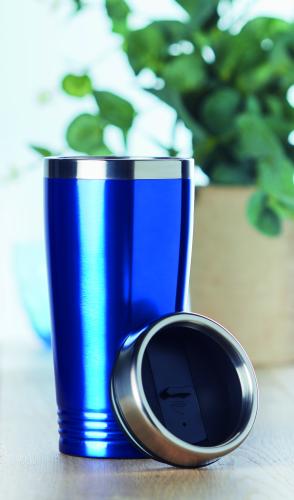 Double wall stainless steel travel cup with black PP lid. Capacity: 400 ml.