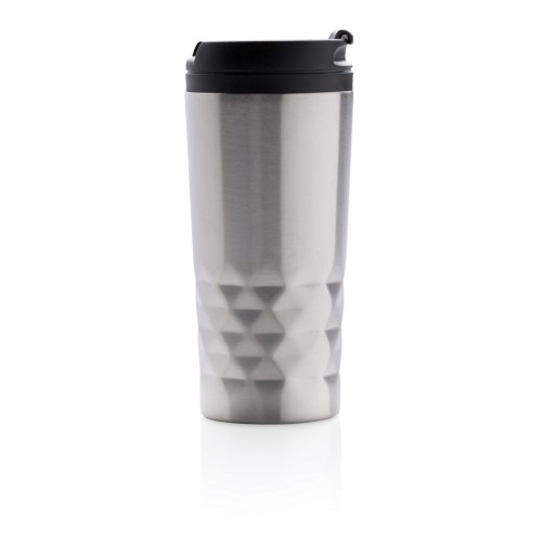 Fashionable stainless steel tumbler with geometric details. Inner body is made out of plastic. Handwash only. Content 300ml.