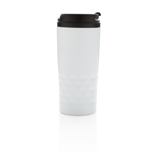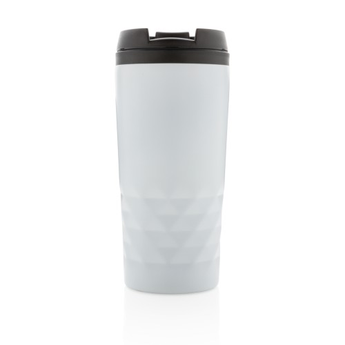 Fashionable stainless steel tumbler with geometric details. Inner body is made out of plastic. Handwash only. Content 300ml.