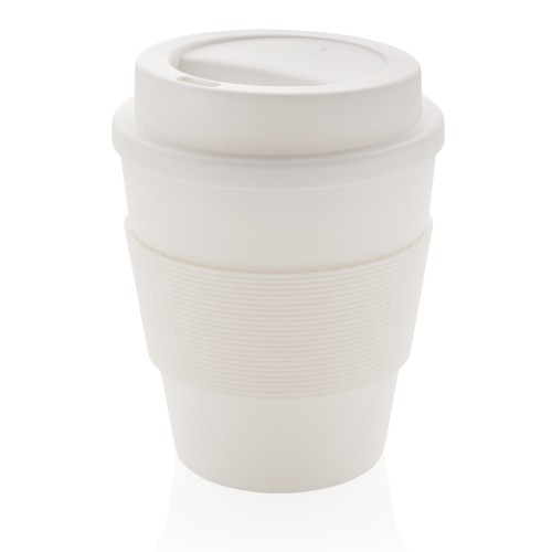 Stop single use! Bring your own cup and join the reuse revolution so you can contribute to a disposable free world. These lightweight and durable cups are perfectly suited to take your coffee on the go. These cups are reusable and made of 100% recyclable friendly PP material. The cups have a screw lid and a silicon sleeve. 100 degree Celsius food safe approved. Content: 350ml.