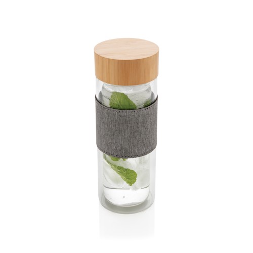 No more buying plastic water bottles from the shops but reuse your own durable bottle from the Impact Collection. By using durable glass and stainless steel materials you improve the re-usability of products compared to single use products. With the focus on water, 2% of proceeds of each sold Impact product will be donated to Water.org. Supporting your sustainable lifestyle, the Impact double wall glass bottle with bamboo lid reduces your plastic waste and improves your hydration habits. Made of borosilicate premium-quality glass, this double wall bottle is extra resistant to big thermal changes, so it's safe to carry your hot tea too. A beautiful sleeve completes the look. Capacity 360ml. BPA free.