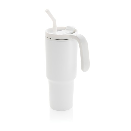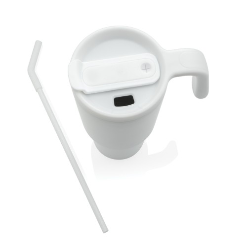 The most popular mug now suitable for perfect 360 round body printing. A 900ml tumbler designed for eco-friendly hydration, made with recycled materials. Whether you're working, exercising, or travelling, this tumbler is your perfect companion. The innovative lid features a rotating cap with three positions: a spill-resistant straw opening, a sipping spout, and a fully sealed lid. The ergonomic handle with comfort-grip inserts ensures easy carrying, and the slim base fits most car cup holders. Hand wash only. BPA-free. Capacity: 900ml. Includes FSC®-certified kraft gift packaging. Total recycled content: 36% based on total item weight.