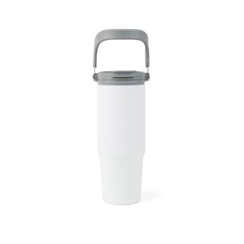 This recycled stainless steel vacuum bottle features a modern design that combines functionality with style. With a generous capacity of 880 ML, it's perfect for all-day hydration on your daily adventures. The bottle includes a functional handle for easy carrying, and the lid offers two beverage intake options. The double-walled insulation keeps your drink cold for up to 16 hours and hot for up to 3 hours, ensuring you stay refreshed throughout your journey. Spillproof. Not dishwasher or microwave safe, only handwash. Including FSC®-certified kraft packaging. Certified by RCS (Recycled Claim Standard), RCS certification guarantees that the entire supply chain of recycled materials is certified. The total recycled content is based on the overall product weight. This product contains 65% RCS-certified recycled stainless steel.