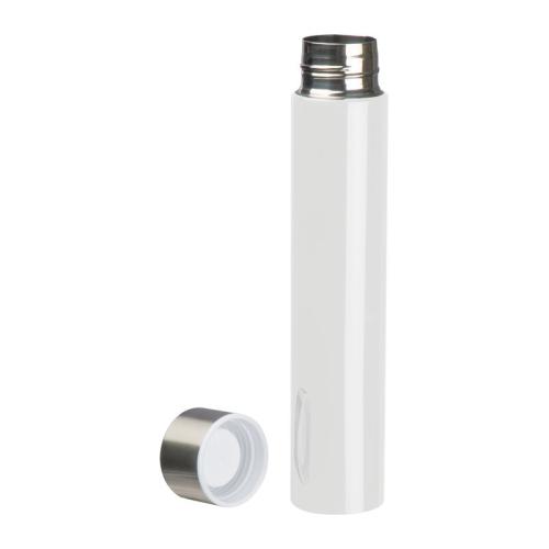 Leak-proof, slim, stainless steel thermos flask with a 310 ml filling capacity.