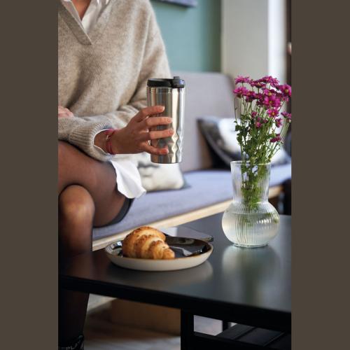 Double walled, leak-proof, non-slip thermo mug made of stainless steel with a capacity of 400 ml.