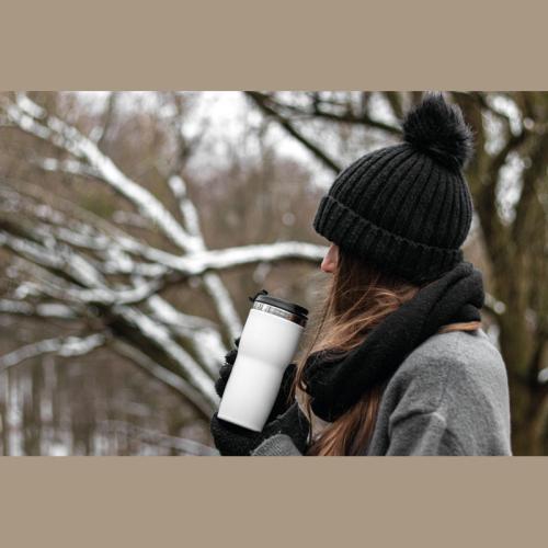 Thermo drinking mug with stainless steel casing and a capacity of 480 mlm double-walled.