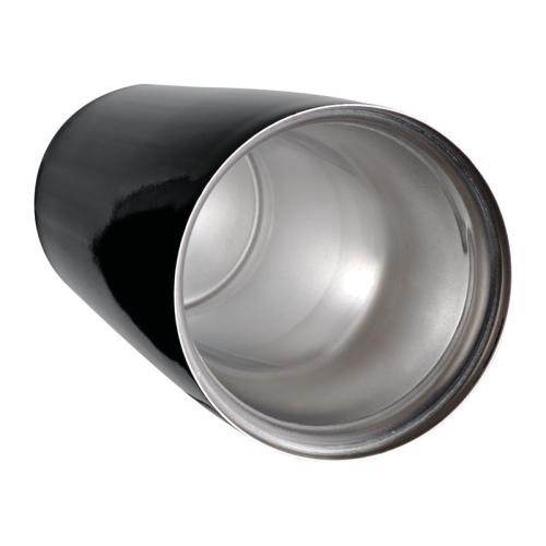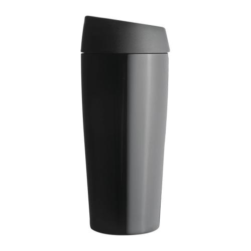 Double-walled elegant insulated drinking mug, which can be opened and closed by a push button on the lid. The mug has a capacity of 400 ml and is made of high-quality stainless steel inside and outside.