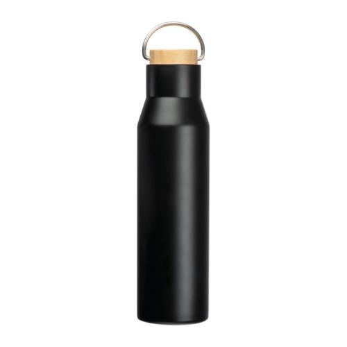 Drinking bottle made from recycled stainless steel with vacuum insulation, bamboo lid with handle and 550ml capacity.