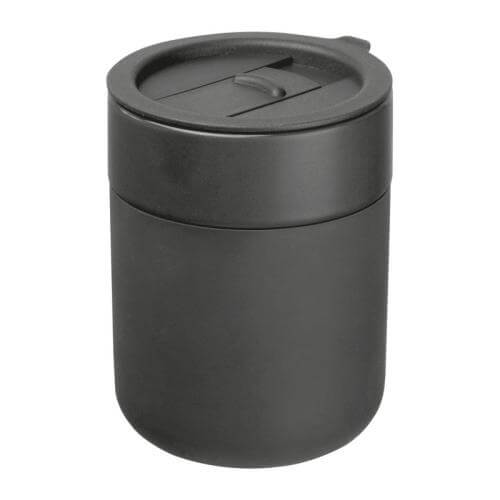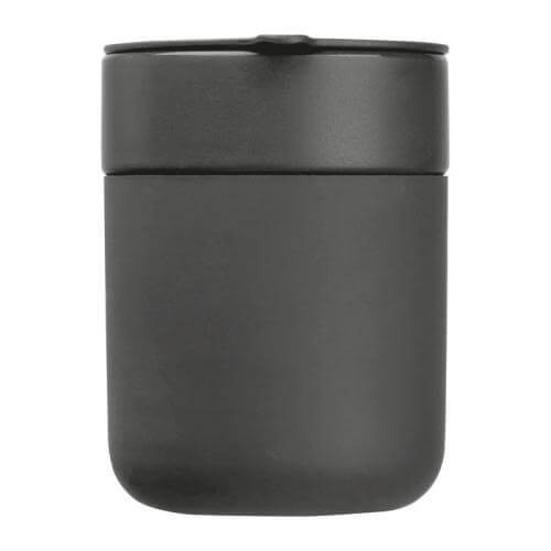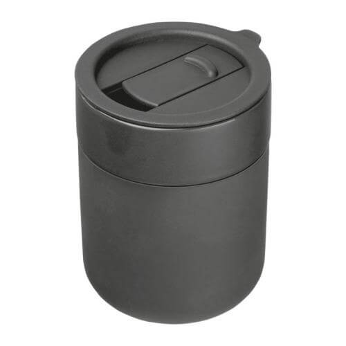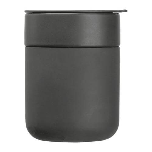 Ceramic drinking cup with silicone sleeve, drinking slide in the lid and 340ml capacity.
