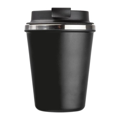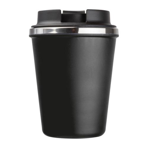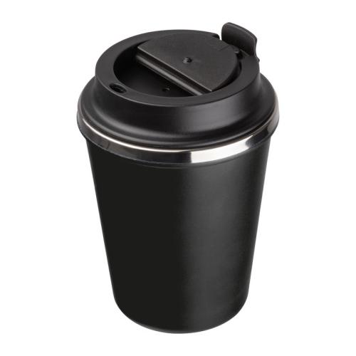 Double-walled drinking cup with a stainless steel interior and a recycled plastic exterior. Filling capacity of 350ml and a leak-proof screw cap with lockable drinking opening.