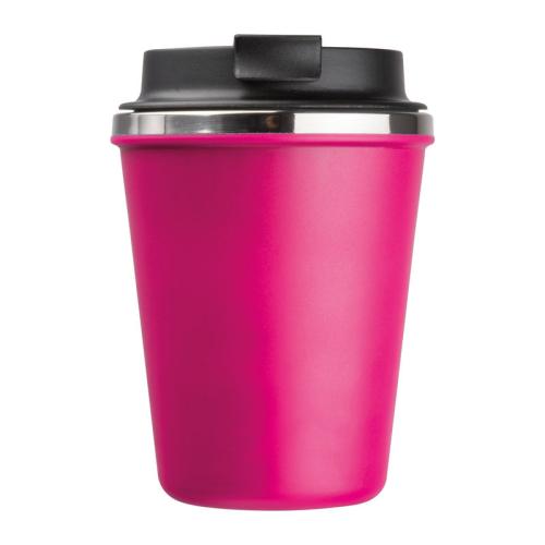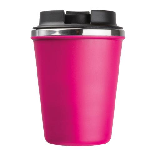 Double-walled drinking cup with a stainless steel interior and a recycled plastic exterior. Filling capacity of 350ml and a leak-proof screw cap with lockable drinking opening.