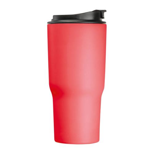 Elegant double-walled vacuum drinking cup made of stainless steel with a capacity of 550ml, a leak-proof screw cap and drinking opening as well as a practical carrying strap.
