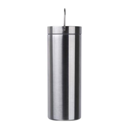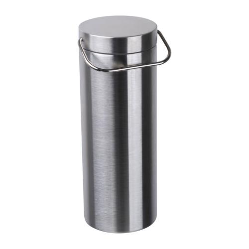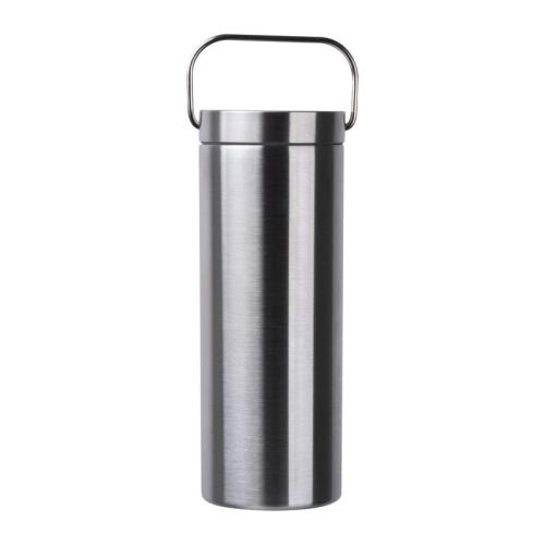 Double-walled stainless steel drinking bottle with leak-proof screw cap. The vacuum insulation keeps drinks hot or cold for a long time.