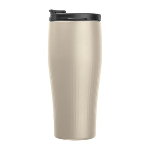 Double-walled vacuum stainless steel drinking cup with 500ml capacity and leak-proof lid.