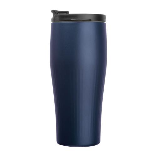 Double-walled vacuum stainless steel drinking cup with 500ml capacity and leak-proof lid.
