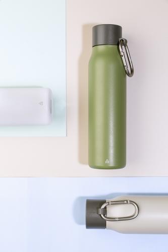 Double-wall, recycled stainless steel vacuum insulated bottle with PP lid and recycled aluminium carabiner. 500 ml.