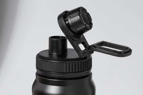 Double-wall, recycled stainless steel vacuum insulated bottle with vertical grooves. Features a PP drinking lid with integrated carry handle. 540 ml.