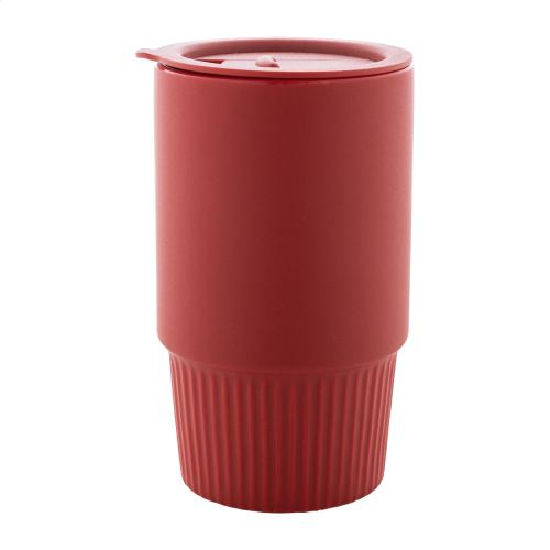 High quality ceramic travel mug with matte outside finish and PP plastic drinking lid. 420 ml.