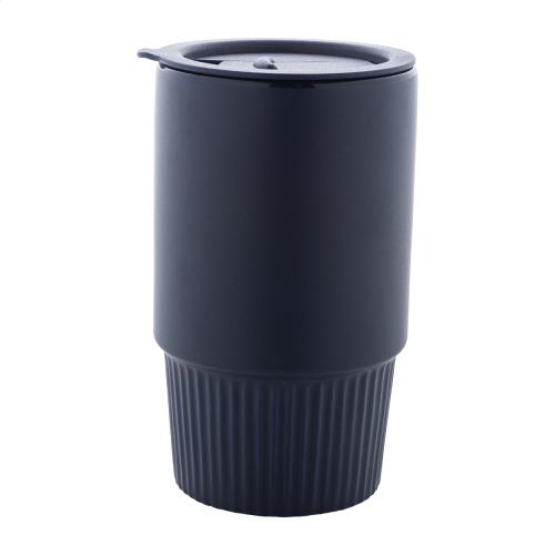 High quality ceramic travel mug with matte outside finish and PP plastic drinking lid. 420 ml.