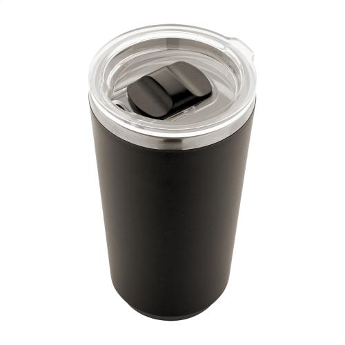 PP plastic covered double-wall, stainless steel thermo cup with drinking lid. 500 ml.