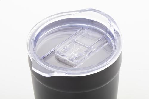 Double-wall, recycled stainless steel vacuum insulated thermo cup with bamboo base and AS plastic drinking lid. 600 ml.
