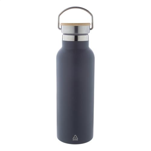 Double-wall, recycled stainless steel vacuum insulated bottle with bamboo carry lid. 500 ml.