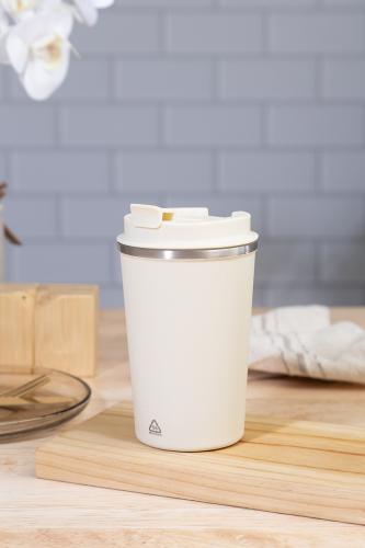 Double-wall, recycled stainless steel insulated thermo cup with PP drinking lid. 350 ml.