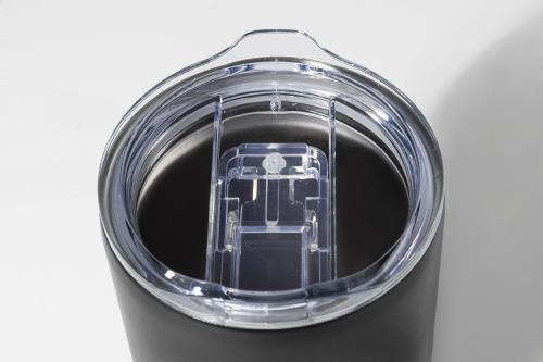 Double-wall, recycled stainless steel insulated thermo cup with ABS plastic drinking lid. 600 ml.