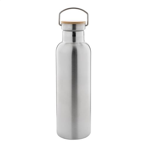Double-wall, recycled stainless steel vacuum insulated bottle with bamboo carry lid, 750 ml.
