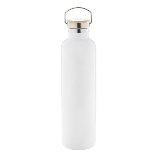 Double-wall, recycled stainless steel vacuum insulated bottle with bamboo carry lid, 1000 ml.