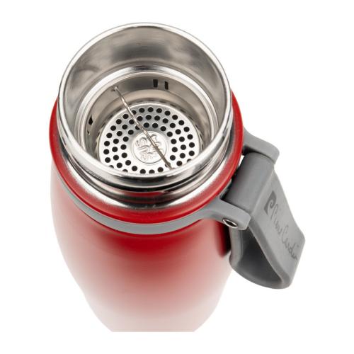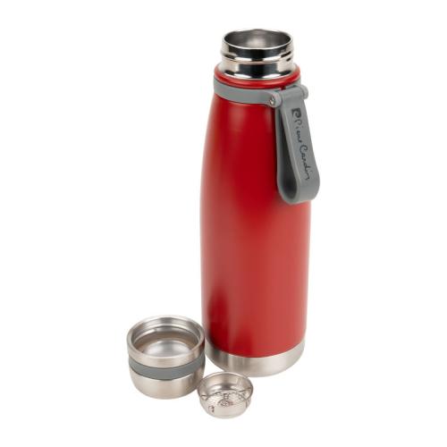 A 650 ml Pierre Cardin thermal bottle, made of food-grade stainless steel. The vacuum technology used maintains the temperature of hot drinks for up to 12 hours and cold drinks for up to 15 hours. The product is BPA-free and made of environmentally friendly materials. Intended for hand wash only. The bottle has a practical handle.