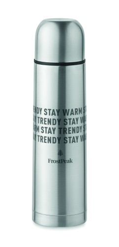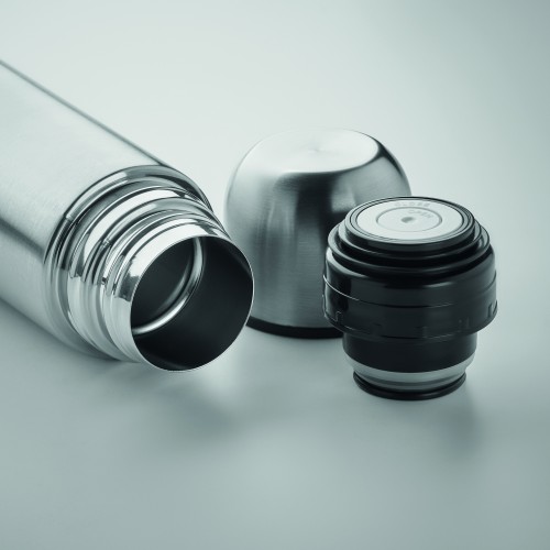 Double wall recycled stainless steel (90% recycled stainless and 10% stainless steel) insulated vacuum bottle. Leak-free. Capacity: 500 ml.