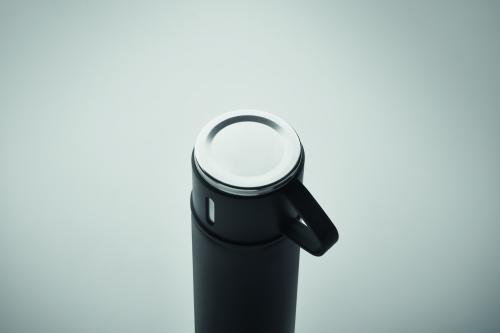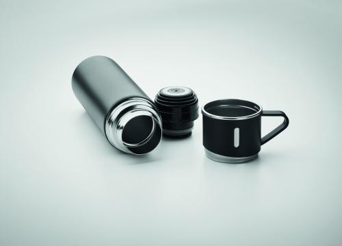 Double wall stainless steel vacuum insulated flask with leak-free cup lid. Capacity: flask 420 ml, cup 150 ml.