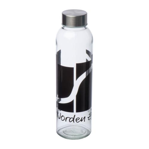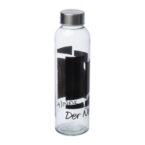 Drinking bottle, made of glass, with grey leak-proof lid and a 500 ml filling capacity.
