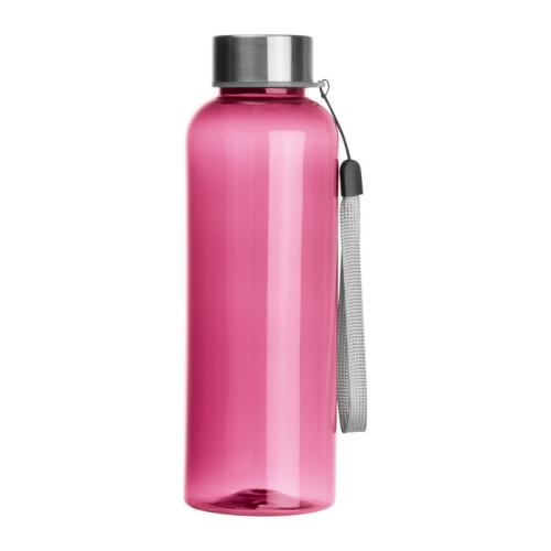PET drinking bottle with stainless steel lid, hand loop and a capacity of 500 ml.