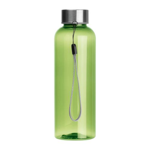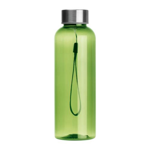 PET drinking bottle with stainless steel lid, hand loop and a capacity of 500 ml.