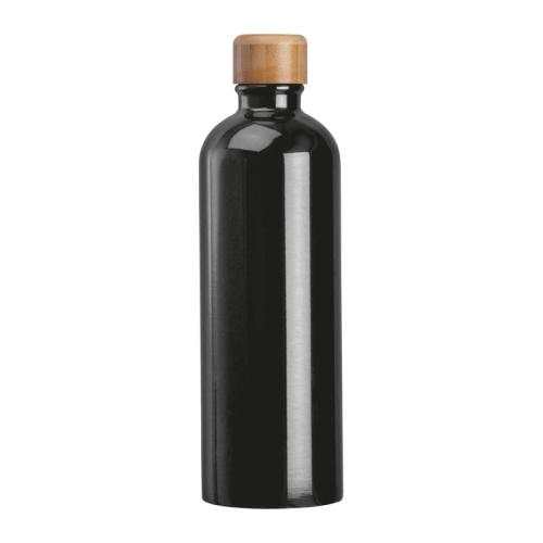 Large stainless steel drinking bottle with practical carabiner, a capacity of 750ml and a leak-proof screw cap with bamboo lid.