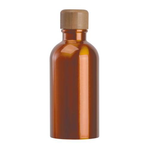 Small stainless steel drinking bottle with practical carabiner, a capacity of 400ml and a leak-proof screw cap with bamboo lid.
