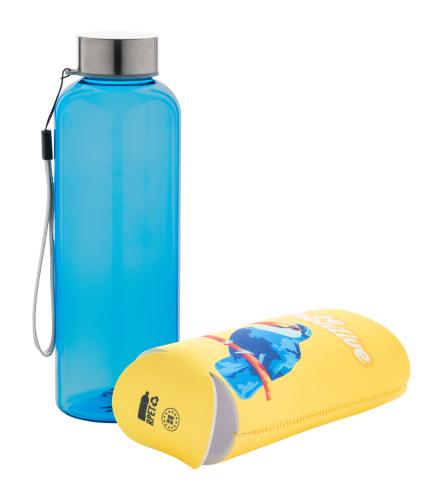 RPET bottle with stainless steel cap in custom made, RPET neoprene cover with full colour printed graphics. Price includes sublimation printing. 500 ml. MOQ: 50 pcs. Not suitable for carbonated drinks.