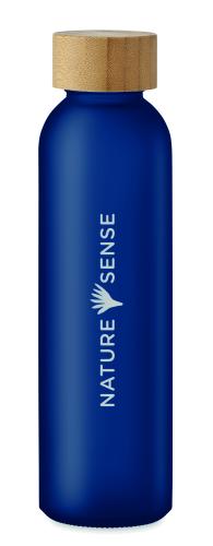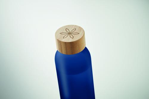 Glass bottle with frosted finish and bamboo lid. Leak-free. Capacity: 500 ml. Bamboo is a natural product, there may be slight variations in colour and size per item, which can affect the final decoration outcome.
